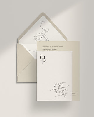 Clean sophistication with a romantic, whimsical flair. This design features minimalist aesthetics, with a gentle, casual script and subtle line art that feels like a handwritten love letter. Imagine a slow dance beneath twinkling lights, the soft sound of Daniel Caesar’s Best Part playing, and the quiet realization that you’ve found the one. It’s an invitation that tells the world you’re ready to celebrate your love.