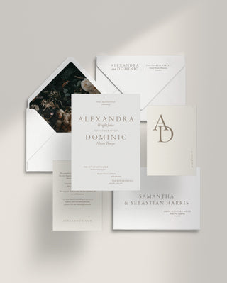 Timeless, soft, and sophisticated—our best-seller! This invitation suite blends soft serif fonts with a timeless design inspired by Roman architecture. With its classic yet refined details, it’s perfect for couples who want a luxurious, enduring style that feels both modern and elegant.