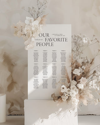 We save you hours of formatting and DIY design frustration with our beautiful seating charts. Simply upload your guest list at checkout, and we'll do it all for you. Colors, text, and shapes can be customized to create your perfect modern wedding aesthetic. Need straps for hanging? We've got those too.