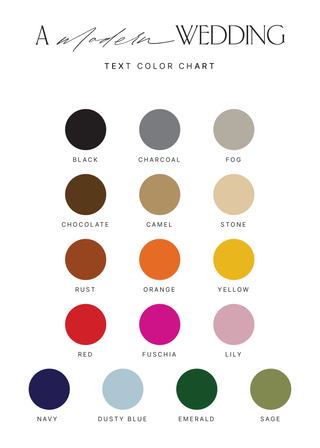 Font colors and text (content) are customizable. If colors are critical for your order, we highly recommend ordering a sample card to preview the look and feel of your table numbers. Varying screens may cause a difference in appearance so we encourage getting a preview for your special day.